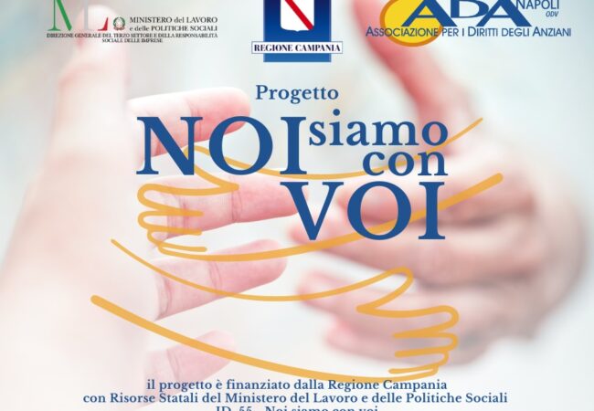 L’Associazione per i Diritti degli Anziani di Napoli Odv (Ada) ha avviato il progetto “Noi Siamo con Voi” che ha lo scopo di affiancare non solo i familiari dei pazienti, ma anche i volontari, i caregivers e gli operatori sanitari affinché possano affrontare con maggiore consapevolezza e serenità il compito che sono chiamati a svolgere quotidianamente.