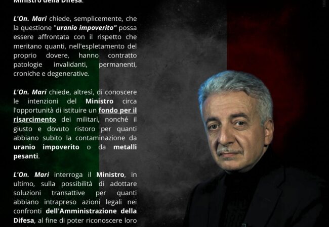 Presentata l’ interrogazione parlamentare a risposta scritta che l’ Onorevole @Franco Mari dei Verdi ha depositato per la vicenda Uranio impoverito.