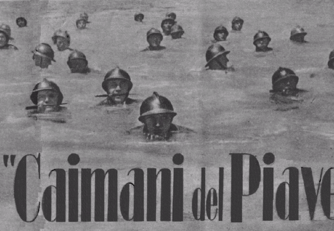 “Caimani del Piave”, ovvero soldati addestrati ad attraversare il fiume, con il favore delle tenebre, utilizzando una tecnica di nuoto che imita quella degli alligatori, ovvero facendo emergere dall’acqua, solamente la testa appena sopra le narici, quanto bastava per respirare, con il pugnale tra i denti.