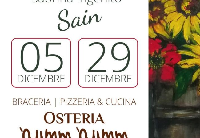 Si intitola “Oltre i Colori” la mostra dell’artista Sabrina Ingenito che verrà inaugurata il prossimo giovedì 5 dicembre, alle ore 21, presso l’Osteria ‘Aumm ‘Aumm.
