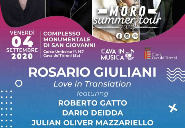 Concerto per la chiusura della stagione musicale Moro Summer Tour 2020 presso il Complesso monumentale di San Giovanni a Cava de’ Tirreni venerdì prossimo 4 settembre.