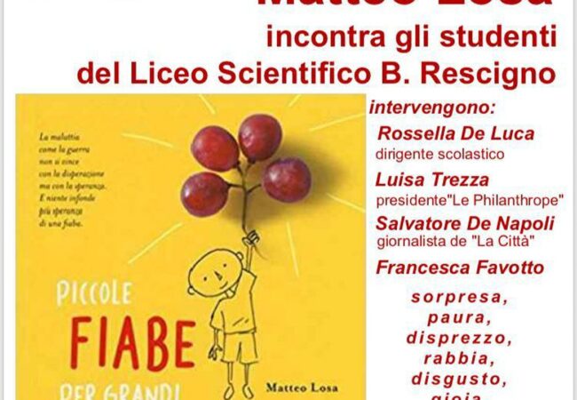 Sempre nella mattinata di venerdì 8 febbraio Matteo Losa sarà all’Umberto I di Nocera Inferiore, al reparto di oncologia pediatrica per donare alcuni libri e leggere le sue favole prima ai piccoli guerrieri dell’ospedale nocerino e subito dopo anche al polo oncologico di Pagani dove incontrerà il direttore sanitario Mario Salucci, medici e pazienti.