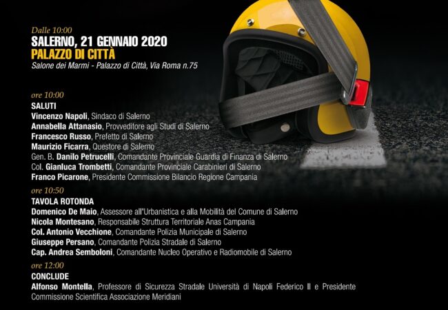 Domani, martedì 21 gennaio, alle ore 09,30, sarà il Comune di Salerno – Salone dei Marmi – ad ospitare la tredicesima tappa del progetto “Sii Saggio, Guida Sicuro” anno 2019/2020.