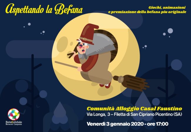 Torna venerdì 3 Gennaio 2020 alle ore 17,00 “Aspettando la Befana..” il tradizionale evento di inizio anno giunto alla sua XIX Edizione,organizzato dagli ospiti della comunità ReteSolidale. Tra i presenti anche il Sindaco di San Cipriano Picentino, Sonia Alfano e il Presidente Commissione Pari Opportunità del Comune, Maria Rosaria Paraggio.