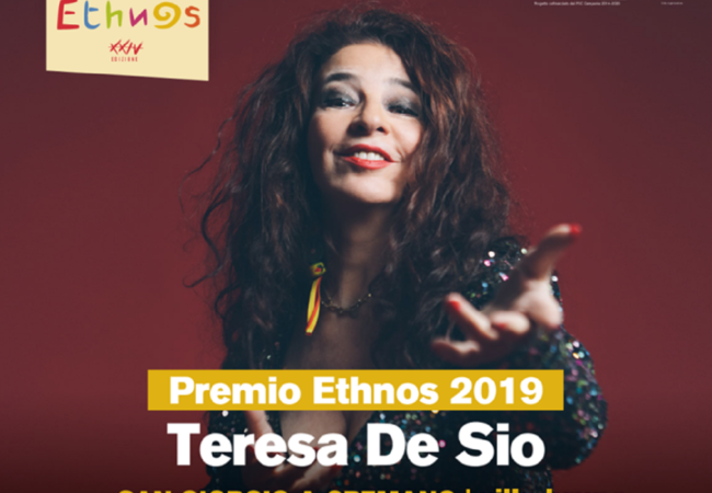 Oltre all’atteso concerto in programma alle 20.30 a Villa Vannucchi (via Roma, 47), infatti, Teresa De Sio ritirerà il Premio Ethnos 2019, alle ore 19 alla Biblioteca di Villa Bruno / via Cavalli di Bronzo, 22).