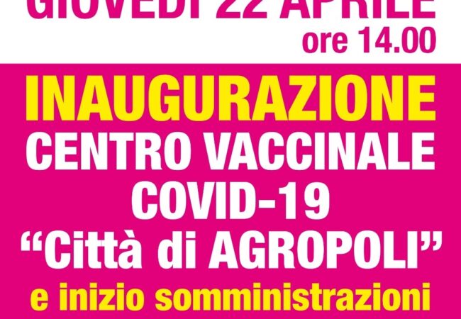 Domani, giovedì 22 aprile 2021, alle ore 14.00, apre i battenti il Centro Vaccinale Covid- 19 “Città di Agropoli”. E’ sito presso la palestra “F. Scarpa”, sede della Croce Rossa – Comitato di Agropoli e Cilento.