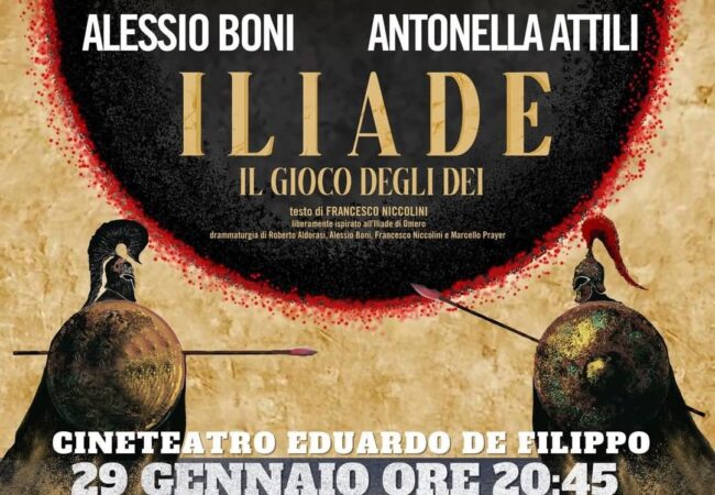 Nuovo appuntamento al Cineteatro “De Filippo” di Agropoli dove il 29 gennaio andrà in scena “Iliade, il gioco degli dei” con testo di Francesco Niccolini per la regia di Roberto Aldorasi, Alessio Boni e Marcello Prayer. Liberamente ispirato all’Iliade di Omero. Appuntamento alle ore 20.45.