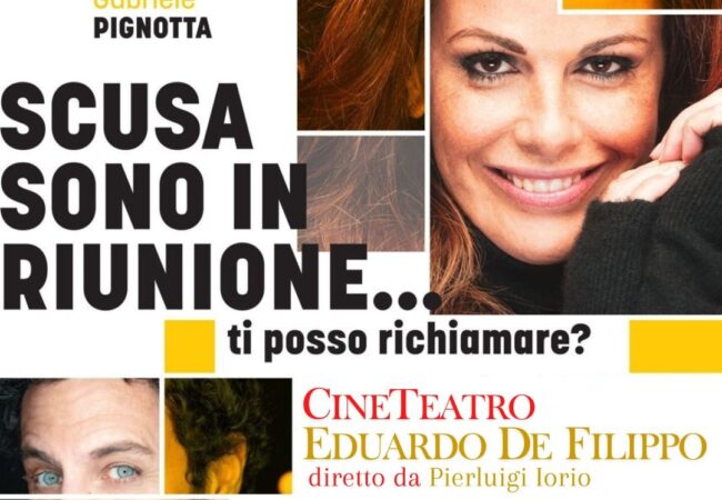 Mercoledì 10 aprile 2024, al Cineteatro “De Filippo” di Agropoli andrà in scena “Scusa, sono in riunione…Ti posso richiamare?” con Vanessa Incontrada e Gabriele Pignotta, scritto e diretto da Gabriele Pignotta. Inizio spettacolo alle ore 20.45. Si tratta dell’ultimo spettacolo dell’ottava stagione teatrale della struttura comunale diretta da Pierluigi Iorio.