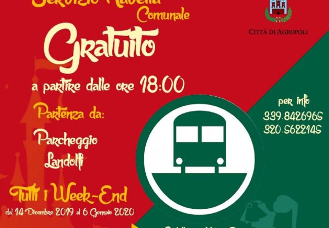 Al via da domani, sabato 14 dicembre, il servizio navetta comunale gratuita per raggiungere il borgo antico di Agropoli. Sarà operativo tutti i fine settimana fino al 6 gennaio 2020. Il punto di ritrovo per coloro che volessero usufruirne è il parcheggio dell’ex campo sportivo Landolfi, a partire dalle ore 18.00.