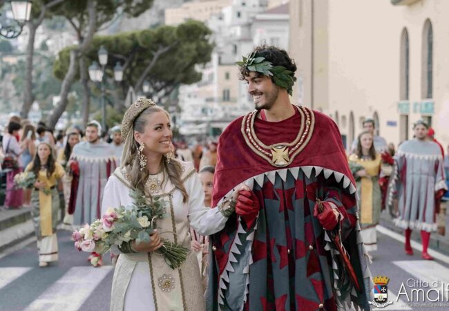 E la straordinaria potenza economica e relazionale espressa dal Ducato di Amalfi in epoca Medievale è sintetizzata nel suo imponente Corteo storico con oltre cento figuranti che farà da cornice all’evento e attraverso cui si ricostruisce la sfilata per le nozze di Sergio III, figlio del duca di Amalfi Giovanni I e nipote del duca Mansone I, con Maria, figlia del principe di Benevento e Capua Pandolfo II, avvenute nel 1002. In occasione del Capodanno Bizantino viene presentata una versione più ricca del Corteo che ogni anno accompagna la Regata delle Antiche Repubbliche Marinare: tra esponenti del Governo ducale, nobili, cavalieri, dame, paggi, valletti, arcieri e marinai, popolane, tutti in abiti disegnati nel 1955 dallo scenografo del San Carlo di Napoli, Roberto Scielzo – celebrano l’apogeo della Repubblica intorno al Mille, quando le navi amalfitane solcavano sia il Mediterraneo orientale che quello occidentale creando ‘colonie virtuali’ nei principali centri dell’impero bizantino.