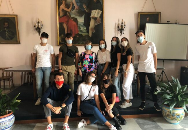 Gli studenti vincitori, appartenenti alla classe IV sez. A, e la docente ideatrice e responsabile del progetto “il rosso e il giallo”, prof.ssa Rita D’Ancora, ospiti del sindaco metelliano Vincenzo Servalli, si sono collegati online dal Palazzo di Città di Cava de’ Tirreni e intervenuti per illustrare l’articolato percorso di studio, seguito in gemellaggio con l’Isiss “Domenico Sartor” di Castelfranco Veneto, in provincia di Treviso, e l’Istituto “ùFfilangieri” di Cava de’ Tirreni.