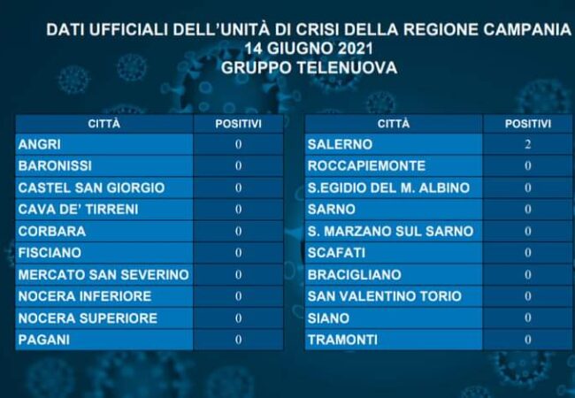 E’ quanto si rileva dal report ufficiale comunicato dall’Unità di crisi della Regione Campania, pubblicato in un post sulla propria pagina Facebook dalla emittente televisiva Telenuova di Pagani.