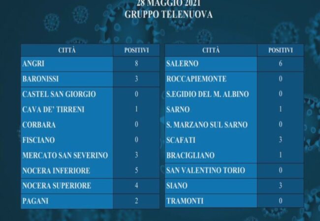 E’ quanto si rileva dal report ufficiale comunicato dall’Unità di crisi della Regione Campania, pubblicato in un post sulla propria pagina Facebook dalla emittente televisiva Telenuova di Pagani.