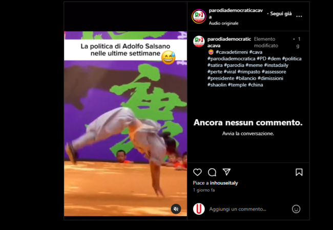 Si è scritto di tutto, ma chi ha raffigurato in maniera sublime l’epico contorsionismo politico di Adolfo Salsano è stato un video di Parodia Democratica che riproponiamo in quanto vale più della lettura di dieci articoli e diecimila parole. E’ un messaggio iconico di grande pregio.