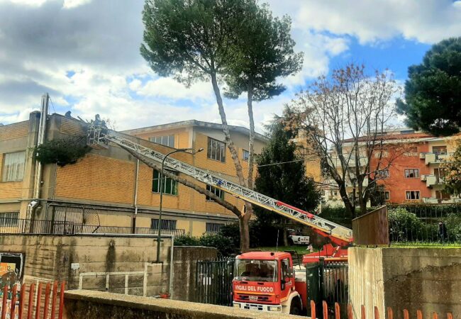 Fortunatamente non ci sono feriti, né danni. Al momento del crollo non c’erano persone sul terrazzo. Il ramo, particolarmente spesso, si è spezzato da un maestoso pino marittimo, tipico della macchia mediterranea, posizionato nel giardino accanto alla scuola.