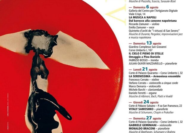 Si prosegue poi con altri sei appuntamenti dall’omaggio alla canzone napoletana, a quello a Pino Daniele, passando per la musica classica di Chopin, Schumann, Beethoven, fino alla serata conclusiva, il 31 agosto, dedicata alle colonne sonore del cinema italiano.