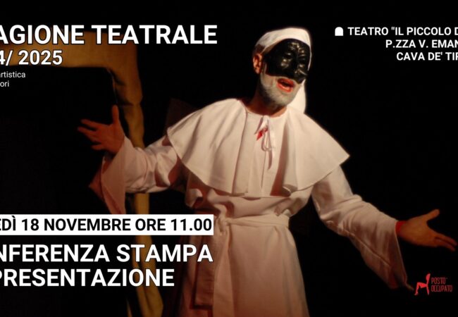 Lunedì 18 novembre dalle ore 11 presso il Teatro “Il Piccolo di Cava” in Piazza V. Emanuele III a Cava de’ Tirreni si terrà la conferenza stampa di presentazione della Stagione Teatrale 2024/2025 organizzata dall’Associazione Arcoscenico con la direzione artistica di Luigi Sinacori.