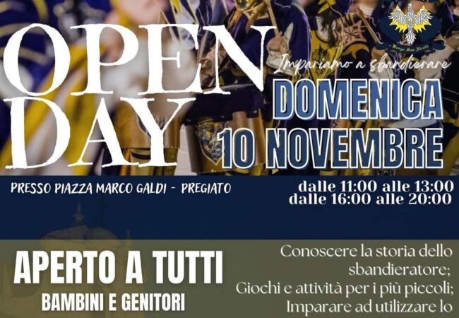 Si svolgerà nella giornata di oggi, domenica 10 novembre in piazza Marco Galdi a Pregiato, dalle ore 11 alle ore 13 e dalle ore 16 alle ore 20, l’open day dell’Associazione Sbandieratori Borgo San Nicolò.