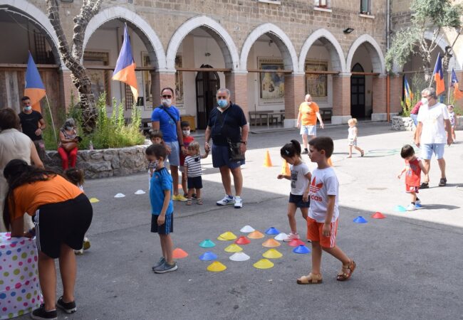 Nonostante il sole cocente, diversi ragazzini accompagnati dai rispettivi nonni si sono cimentati in attività ludico/motorie organizzate all’interno del Chiostro in un vero e proprio villaggio dello Sport.