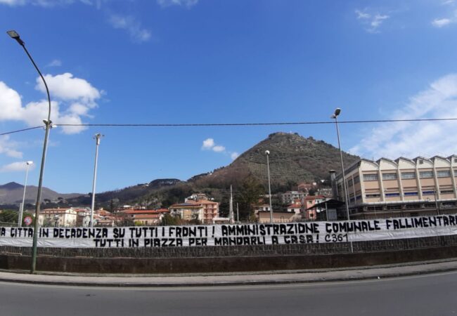 E’ questo il testo dello striscione apparso questa mattina sulla strada statale nei pressi della stazione ferroviaria di Cava de’ Tirreni.