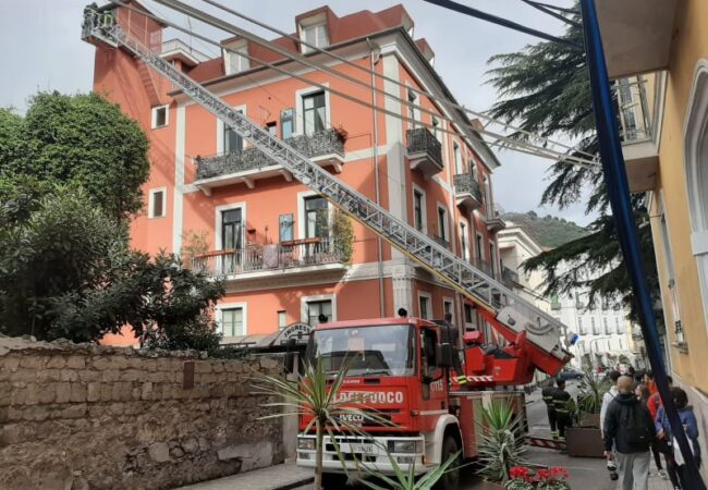 Intervento dei vigili del fuoco in una palazzina di via Rosario Senatore a Cava de’ Tirreni dove un traballante pannello di un ascensore esterno rischiava di precipitare nel cortile del caseggiato.