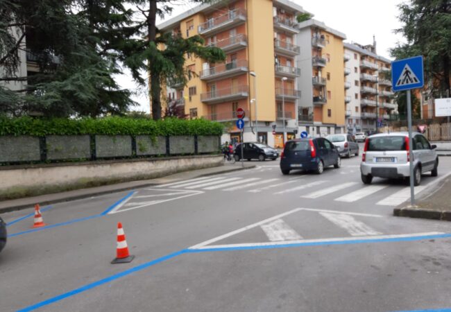 Le strisce immortalate sono in via Talamo e, di buonora, gli addetti della società in house del comune che gestisce la sosta erano intenti a ripassare di pennello i riquadri che delimitano gli stalli dove gli automobilisti lasciano in sosta la propria auto.