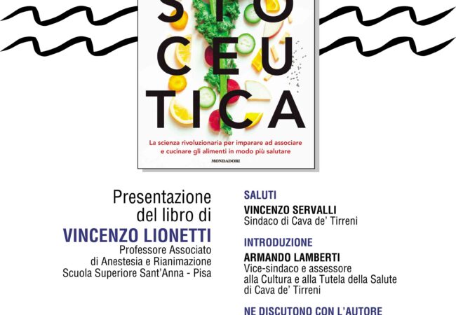 L’evento co-organizzato dal Comune di Cava de’ Tirreni e dalla testata giornalistica “Ulisse online”, in collaborazione la Farmacia Penza Viola di Cava de’ Tirreni, vedrà la presenza dell’autore, il prof. Vincenzo Lionetti, medico-chirurgo e docente di Anestesia e Rianimazione presso la Scuola Superiore Sant’Anna di Pisa, che avrà come interlocutori la prof.ssa Nunzia Armenante, nutrizionista, e il dottor Vito Bentivenga, giornalista.