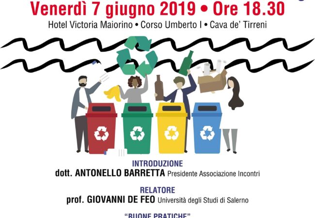 Si intitola “Rifiuti, quali prospettive?” il convegno organizzato dalla neonata Associazione “Incontri”, in collaborazione con la testata giornalistica Ulisse online, che si terrà venerdì 7 giugno, alle ore 18.30 presso l’Hotel Victoria Maiorino di Cava de’ Tirreni.