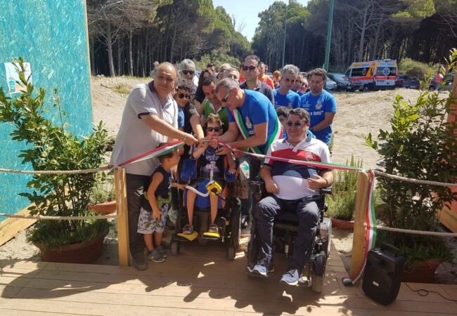 Il taglio del nastro questa mattina alla presenza di amministratori, tecnici e tante persone con disabilità a cui si apre la possibilità di fruire di mare, spiaggia, attrezzature e vacanze.
