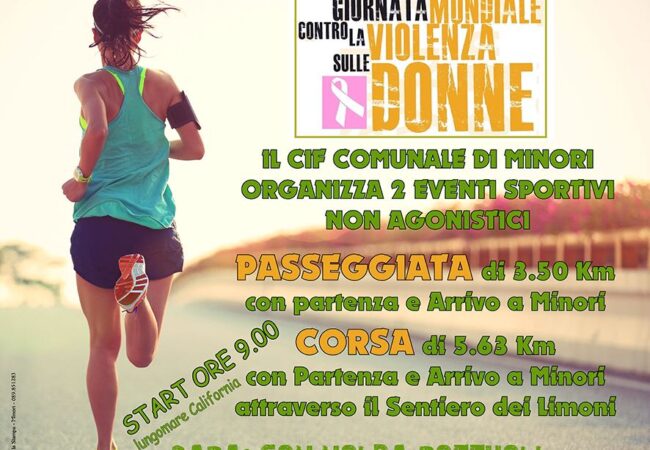Minori, il 25 novembre il Centro Italiano femminile organizza “Correndo diciamo NO alla violenza”