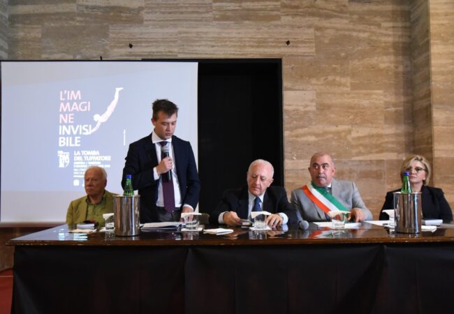 Così il presidente della Regione Campania, Vincenzo De Luca ha tratteggiato la bellezza di un sito archeologico che oggi celebra la sua icona più significativa. Nel cinquantenario della scoperta della Tomba del Tuffatore, il Parco Archeologico di Paestum organizza una mostra che inserisce la tomba più famosa della Magna Grecia in un percorso fatto di materiali archeologici e opere moderne, da Guido Reni a De Chirico. L’obiettivo della mostra, curata dal direttore Gabriel Zuchtriegel, è di “spiegare perché la tomba, oggi come oggi, non si spiega”, come annuncia la guida-catalogo. Gli oggetti archeologici e le opere moderne esposte in mostra raccontano come sin dal Settecento nuovi scavi e scoperte, ma anche correnti artistiche e ideologiche hanno creato il presupposto per una delle controversie più accese dell’archeologia: quella sul significato dell’immagine del tuffatore, che ancora oggi è del tutto aperta.