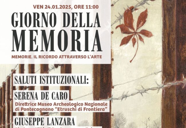 Venerdì 24 Gennaio 2025 alle ore 11.00, in occasione del “Giorno della Memoria”, istituito per commemorare le vittime dell’Olocausto, il Museo archeologico nazionale di Pontecagnano, in collaborazione con il Comune di Pontecagnano Faiano, il Museo regionale della Memoria e della Pace – Centro studi “Giovanni Palatucci”, l’Associazione Nuova Officina onlus e Avalanche 43, ospiterà l’incontro “Memorie. Il ricordo attraverso l’arte”.