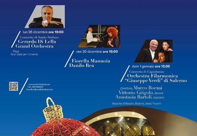 Si parte con il debutto a Ravello di Gerardo Di Lella e dei 71 elementi della sua Grand Òrchestra che nella serata di Santo Stefano (26 dicembre, ore 19) faranno rivivere le musiche che hanno reso immortale nel mondo il nostro cinema. Un viaggio trasversale attraverso i più noti temi dei lavori di registi quali: De Sica, Scola, Sordi, Steno, Rosi, Fellini, Leone, Coppola, Benigni, Zeffirelli, Salerno e che hanno conquistato il giusto rilievo internazionale. In scaletta, musiche di Trovajoli, Rota, Morricone, Bacalov, Piovani, Ortolani, Cipriani, Piccioni ed anche un omaggio a John Williams che di recente ha compiuto 90 anni e alla regista Lina Wertmüller, particolarmente legata a Ravello.