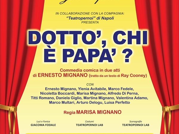 Continua senza sosta, a ritmo di risate, la XVII stagione del Teatro Arbostella Gino Esposito. Quarto appuntamento con un’altra compagnia storica della struttura di Viale Verdi ovvero la Compagnia partenopea Teatropernoi che si cimenterà per i prossimi tre week-end nel divertente spettacolo “Dottò, chi è papà?” scritto da Ernesto Mignano.