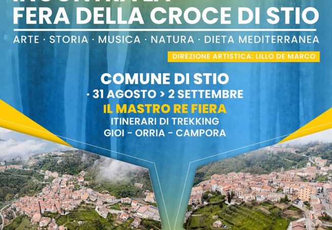 Antica fiera che rivive ogni anno e che a fine agosto grazie al finanziamento della Regione Campania, vedrà il comune di Stio, in collaborazione con le associazioni del territorio, mettere in scena una rievocazione storica “ il mastro re fiera” in costumi d’epoca con musica e sbandieratori che caratterizzeranno tutto l’evento, il tutto accompagnato da tre itinerari di trekking con partenza dai comuni di Gioi, Orria e Campora che porteranno i visitatori a Stio, attraversando boschi e valli, tra paesaggi e siti di interesse storico.