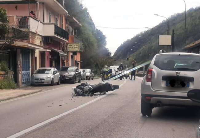 Paura nella tarda mattinata sulla ex Strada Statale 18 dove, intorno alle 11:00, si è consumato un incidente tra una motocicletta e un’auto e un furgone, all’altezza della frazione di Molina.