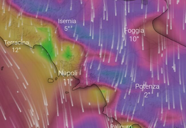 Intense raffiche di Grecale (venti da nord-est) si abbatteranno anche sulla nostra città che, in questi casi, è meno protetta dai monti rispetto al vento occidentale, dove abbiamo l’importante ruolo dei Lattari che fungono da barriera.