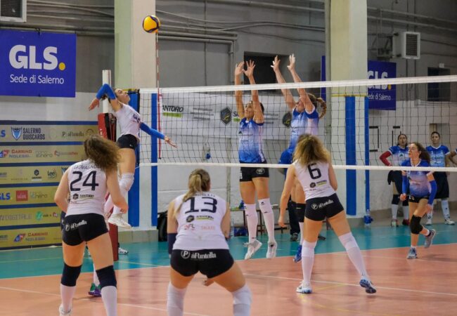 Di Nicuolo e Corallo pareggiano, poi sull’8-10 ancora una volta la GLS Salerno Guiscards accelera. Oltre i punti di capitan Corallo, l’ace di Palladino e l’attacco vincente di Rossin a salire in cattedra è Eleonora Sorrentino che piazza tre muri e un attacco vincente. Sono nove i punti di fila per le foxes che contengono il tentativo ospite di rimonta e chiudono 25-18 con un attacco ancora di Sorrentino. Nel terzo set l’avvio è decisamente equilibrato. Le ospiti di coach Menditti tentano il tutto per tutto, ma trascinate dalla bolgia della Senatore le foxes continuano a spingere. Il parziale è un susseguirsi di emozioni, soprattutto nella fase iniziale, con le due squadre che si confrontano colpo su colpo, con scambi anche lunghi caratterizzati da recuperi difensivi da applausi. Palladino aziona bene tutte le attaccanti, variando molto il gioco, mentre Chiappa in difesa e ricezione non sbaglia praticamente nulla. Sul 12-11 ecco l’accelerata delle foxes che infilano cinque punti consecutivi.