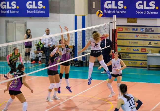 Nel terzo set subito 3-0 per la GLS Salerno Guiscards che però rallenta e subisce un break di otto punti consecutivi. Ci pensa Elisa Di Nicuolo, top scorer della serata insieme a Di Genua con 12 punti, a suonare la carica e a riportare le foxes sul -2. Serino con i punti dell’ex Loria resta avanti ma l’ace di Miglino vale il 12-12. Con due punti consecutivi di Sorrentino, la GLS Salerno Guiscards prova ad accelerare, 18-15, ma a quota 18 è ancora parità. Miglino, prima, Vitiello, poi e infine Di Nicuolo contribuiscono a mettere a segno il break decisivo con il punto di Palladino e l’errore di Serino in attacco per il 25-21 che dà il là alla festa delle foxes.