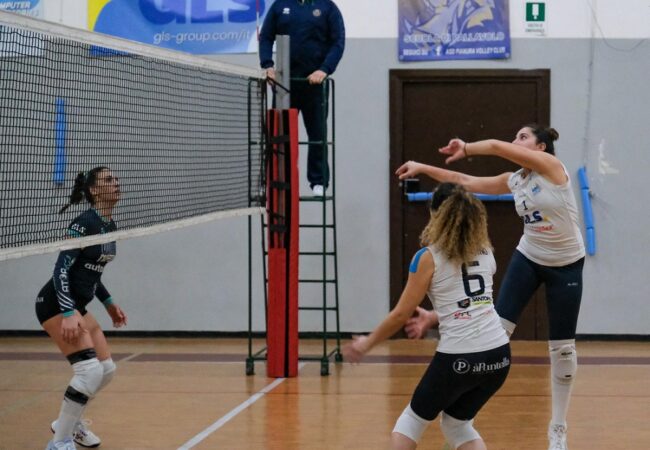 Vanno a segno anche Ruotolo e Sorrentino con Giovagnoli che piazza il pallone che chiude il primo set sul punteggio di 11-25. A inizio secondo set parte forte il Consorzio Volley Napoli che va subito 4-0. La GLS non si scompone, però, e con calma e lucidità ritrova prima la parità a quota sei e poi il primo vantaggio. Salgono in cattedra le centrali Di Nicuolo e Sorrentino per l’allungo che porta il punteggio sull’8-12. Napoli torna a meno uno ma dopo il time out la GLS Salerno Guiscards non concede più nulla e scappa via sul 13-19 con il muro di Sorrentino, top scorer a quota 14. A chiudere il set, poi, sul 20-25 è la fast di Elisa Di Nicuolo.