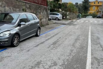 Come si può vedere dall'immagine, a via Ragone è capitato che un auto in sosta non ha consentito di tracciare le strisce blu