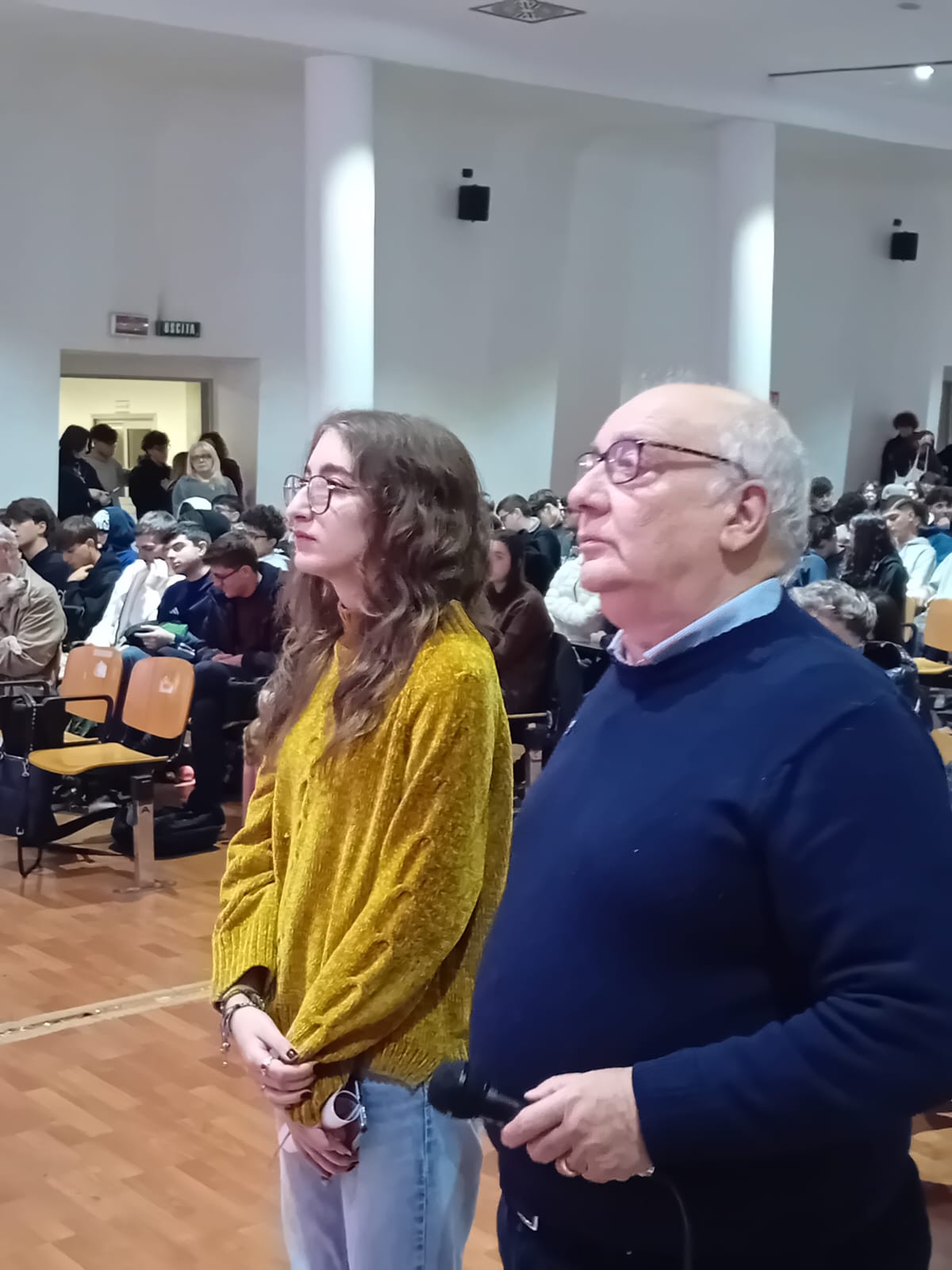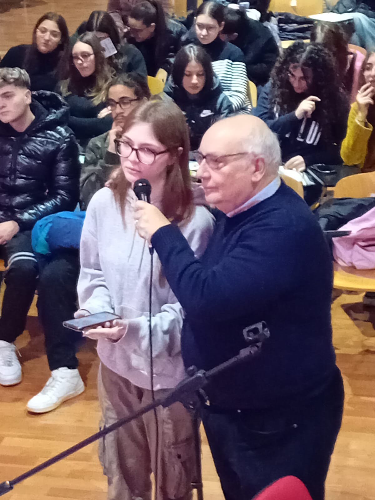 L’incontro di ieri è stato preceduto dalla proiezione del cortometraggio «La “V” sul coltello», realizzato dallo studente Luigi Amato della classe 4BEE del “Della Corte – Vanvitelli”. Un’opera pregevole sul tema della violenza, quantunque cruda ma vera, che ha introdotto nei suoi risvolti più drammatici il tema della giornata.