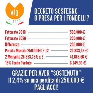 A noi neanche un centesimo ….perdiamo 100.000 € ma non siamo al 33%….