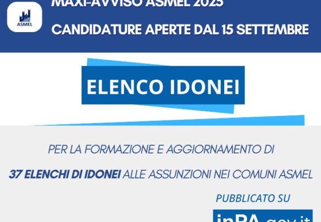 Maxi-Avviso ASMEL 2025: al via le candidature per lavorare nei Comuni italiani
