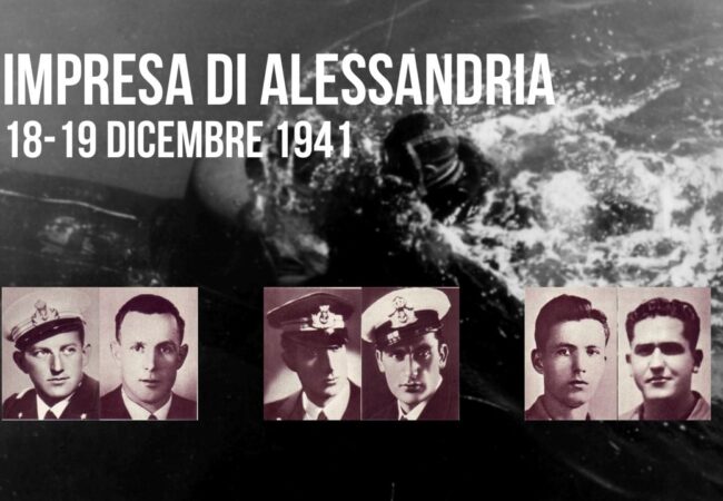 Era la notte tra il 18 e il 19 dicembre 1941 e si stava per compiere l’Impresa di Alessandria. Sei incursori della Marina Militare portarono a termine l’Impresa di Alessandria ai danni della flotta britannica nel Mediterraneo. Luigi Durand de la Penne, Emilio Bianchi, Antonio Marceglia, Spartaco Schergat, Vincenzo Martellotta, Mario Marino, dichiarati in seguito “gli eroi di Alessandria”, scrissero le pagine di un successo nella storia della Marina Militare e in quella navale di tutti i tempi. Questi sei uomini, con le loro forze, sprezzanti del pericolo, e con l’ausilio di alcuni ritrovati tecnologici di incredibile concezione ma drammaticamente primitivi e soggetti a malfunzionamenti e a improvvisi guasti, compirono una mirabolante impresa che fece fremere di rabbia e ammirazione la forza navale più forte del mondo, quella dell’impero britannico.