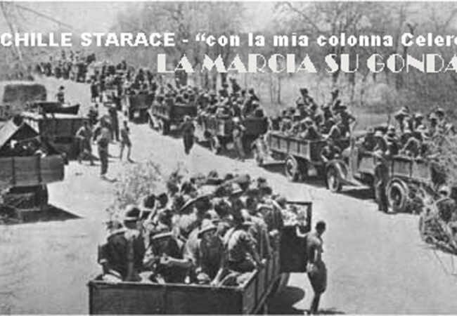 Starace scalpitava perché voleva andare in Africa a fare la sua parte nella conquista dell’Impero, e finalmente arrivò anche per lui l’ordine di partenza, al comando di una organizzatissima colonna di bersaglieri e di camicie nere.