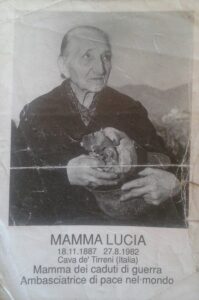 La quale, fin dal 1943, si era impegnata a recuperare e a dare sepoltura a oltre 700 salme di persone morte nella zona di Cava de’ Tirreni in seguito agli attacchi dei tedeschi alle forze alleate. Un’opera mastodontica nella sua portata, che Mamma Lucia svolse quasi alla chetichella, con la più sincera umiltà, lontano da sguardi indiscreti.