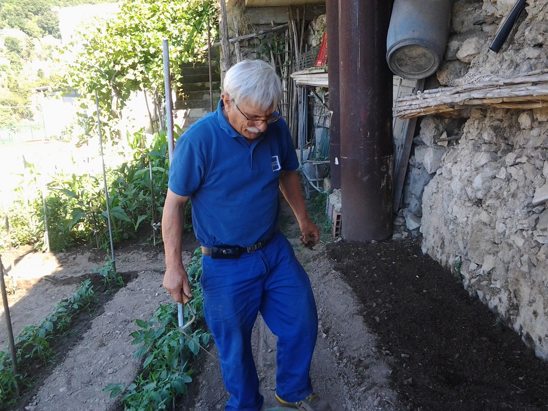 Mario Esposito si prende cura del suo fazzoletto di terra con amore ma non è egoista, tant’è che spesso i turisti nell’ammirare il suo rigoglioso orto si fermano a parlare, incuriositi, e capiscono il lavoro paziente dell’ortolano: anche questo è un modo per apprezzare la bellezza di una terra magica e ammaliatrice.