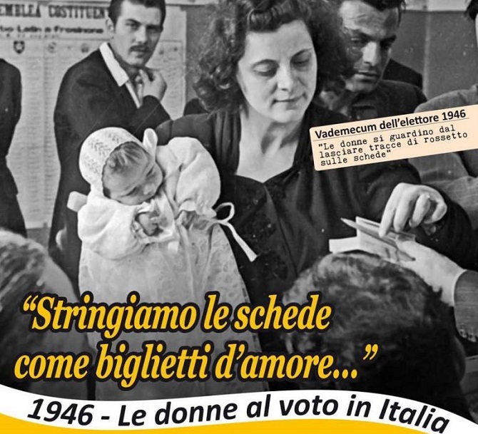 Tra le molte raccomandazioni per le donne, la più importante era di non mettere il rossetto: le schede andavano incollate, umettando un lembo per renderlo adesivo, e un segno del rossetto rischiava di annullare il voto.