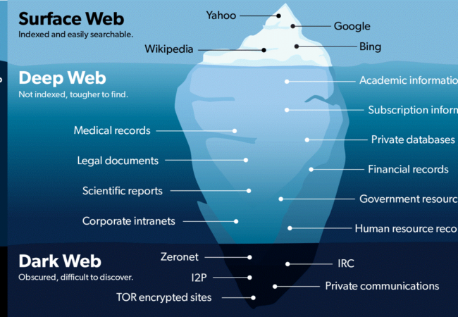 La rete sommersa, tra Deep e Dark, costituisce il 96%, quella ufficiale è solo il 4%: il grafico che correda questo articolo è molto esplicito.